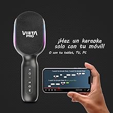 - En resumen, el Karaoke Party de Vieta Pro es una excelente opción para aquellos que buscan una experiencia de karaoke auténtica y de alta calidad. Con su opción true wireless, sus cuatro modos de configuración y su capacidad para bajar la voz de las canciones, este micrófono es perfecto para disfrutar de la música con amigos y familiares. Además, con su batería de larga duración y su potencia de 18 W, podrás cantar durante horas sin preocuparte por quedarte sin energía.